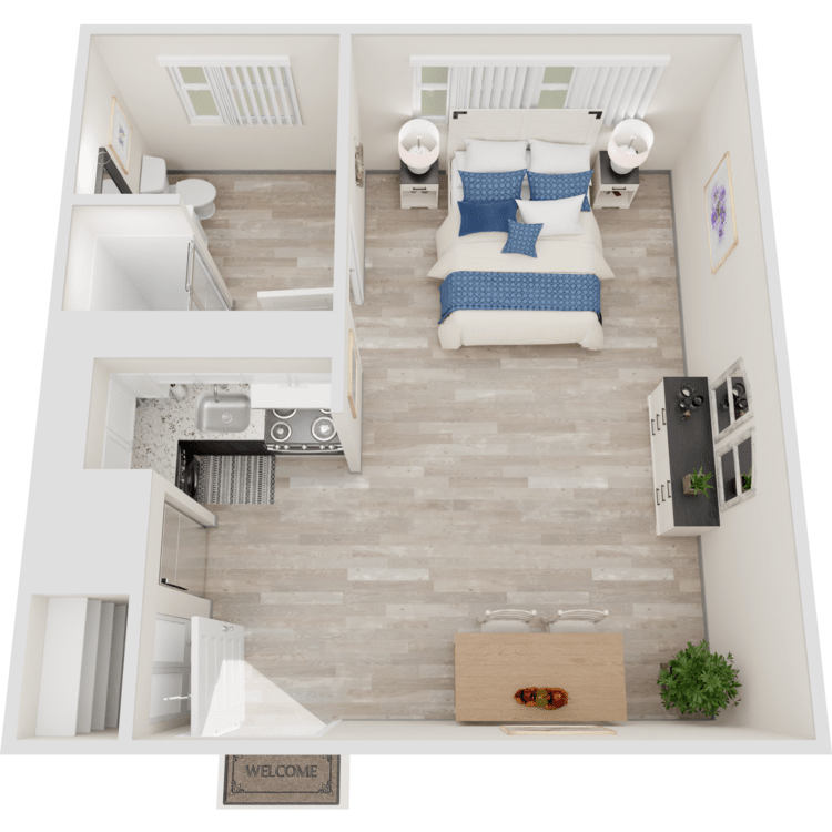 We offer studio, one, and two-bedroom apartments for rent. Each residence features air conditioning, an all-electric kitchen, and are cable-ready. Available in select apartments are microwaves, refrigerators, vaulted ceilings, and washers and dryers. Fully furnished homes are also available.